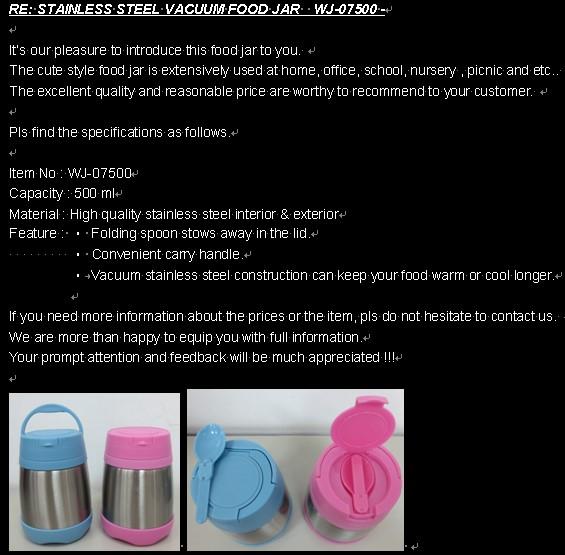 TARRO WJ-07500 DEL ALIMENTO DEL VACÍO DEL ACERO INOXIDABLE